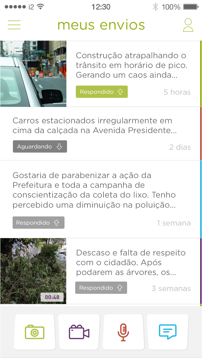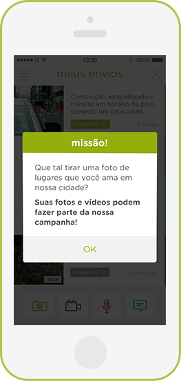 Com o UpCity, os usuários podem se expressar e mandar mensagens relatando seus problemas ou fatos da cidade utilizando vídeos, fotos, textos e áudios.